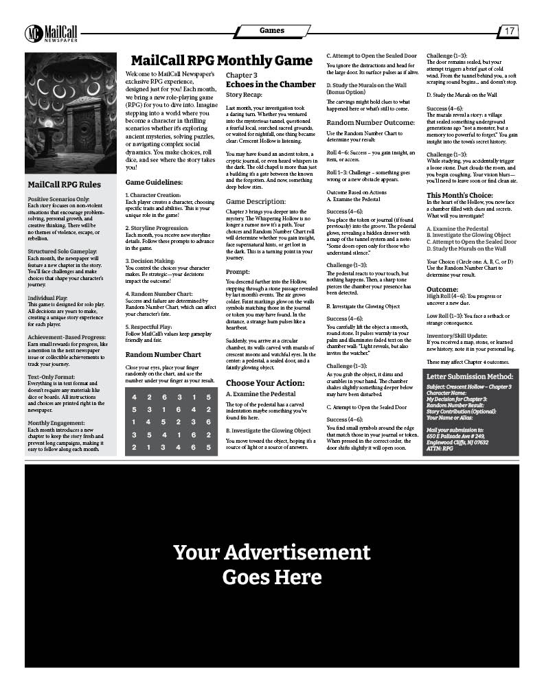 Unlike mainstream platforms flooded with ads, Mailcall offers a rare space where your message truly stands out. With limited ad slots and zero digital clutter, every placement gets noticed, discussed, and remembered. It’s not just exposure—it’s visibility in one of the most exclusive advertising environments in the U.S.