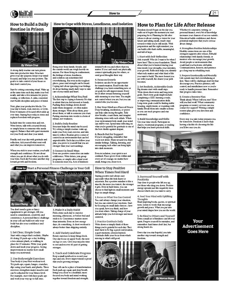 Advertising in MailCall Newspaper isn’t just business—it’s a commitment. It shows inmates, families, and communities that your brand believes in second chances, education, and hope.