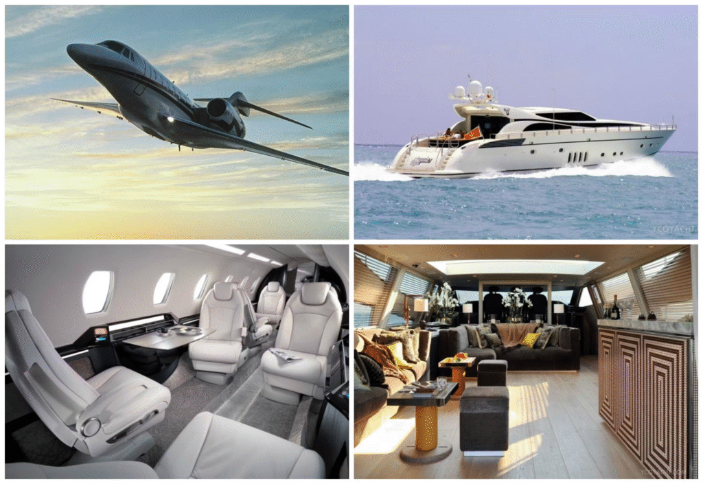 For the ultra-wealthy, private jets and yachts are more than transportation, they’re flying or floating palaces.